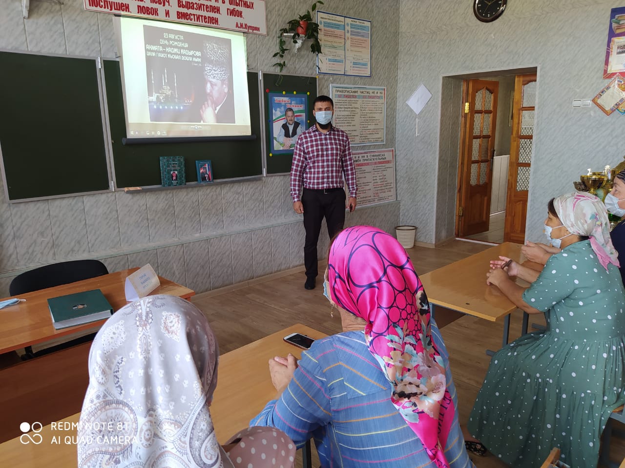 Выступление с торжественной речью директора школы Еракаева Р.Х. перед участниками собрания.
