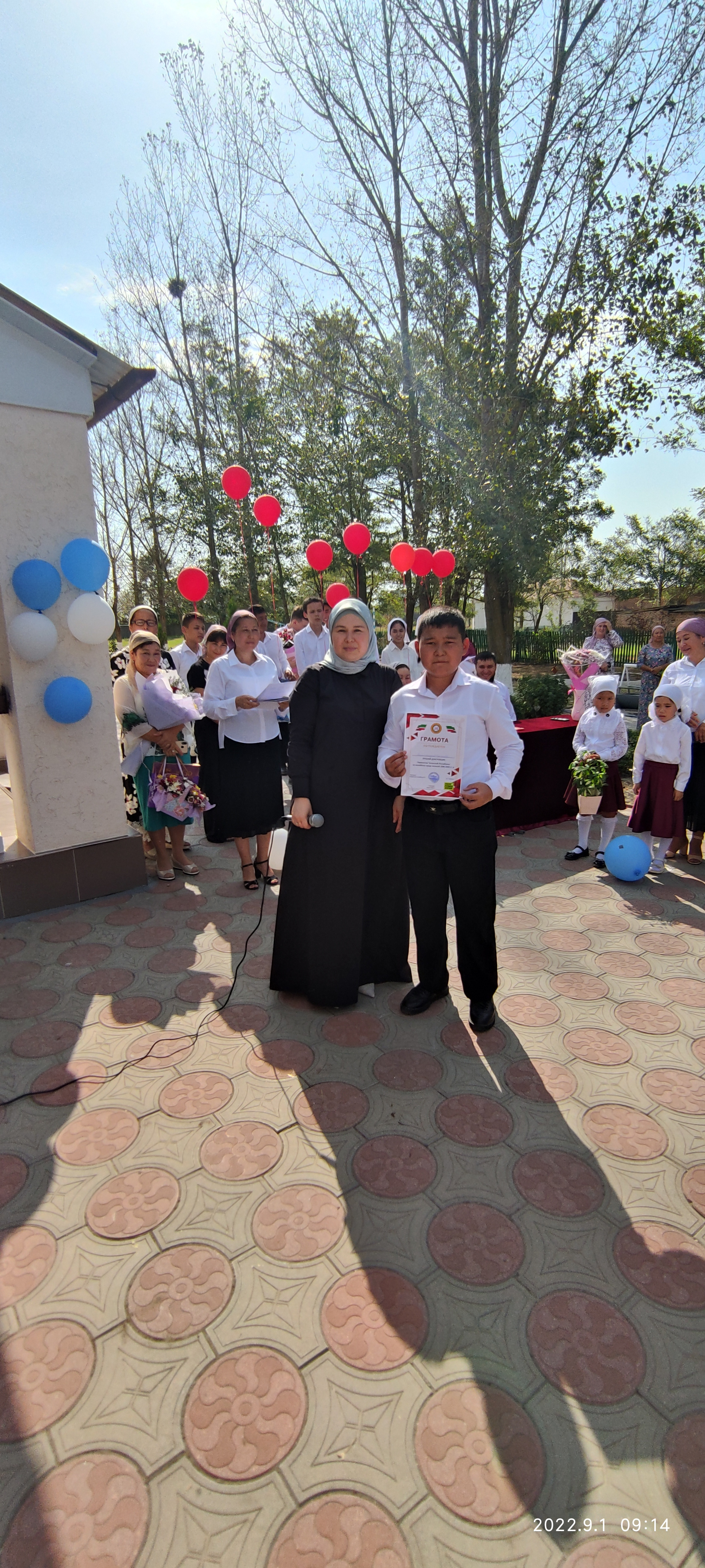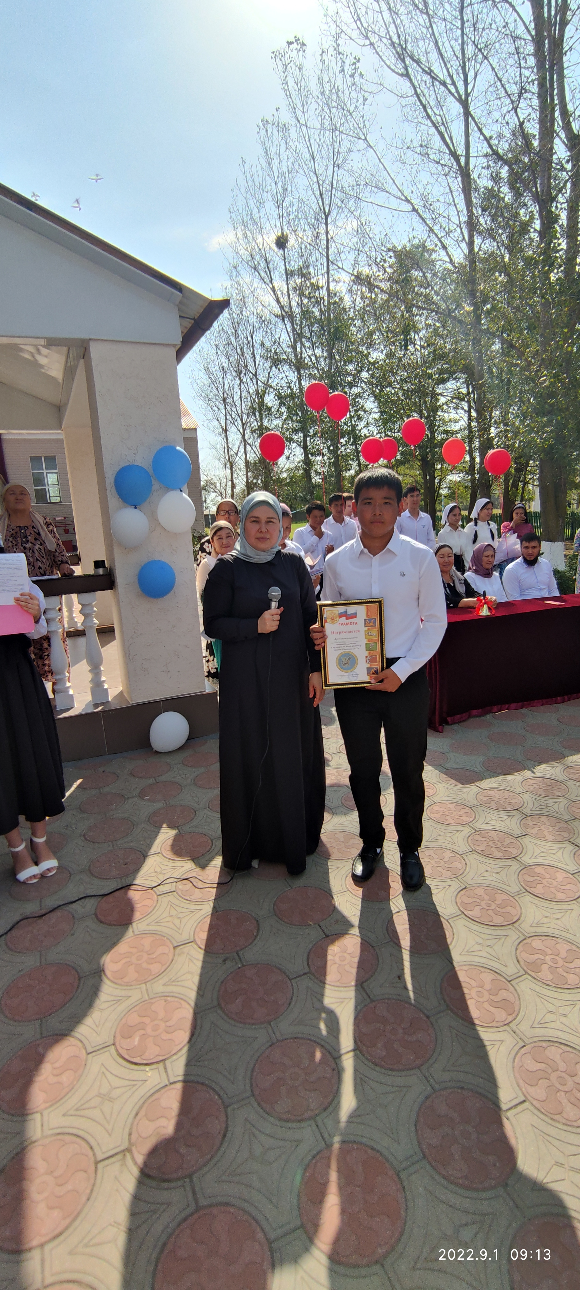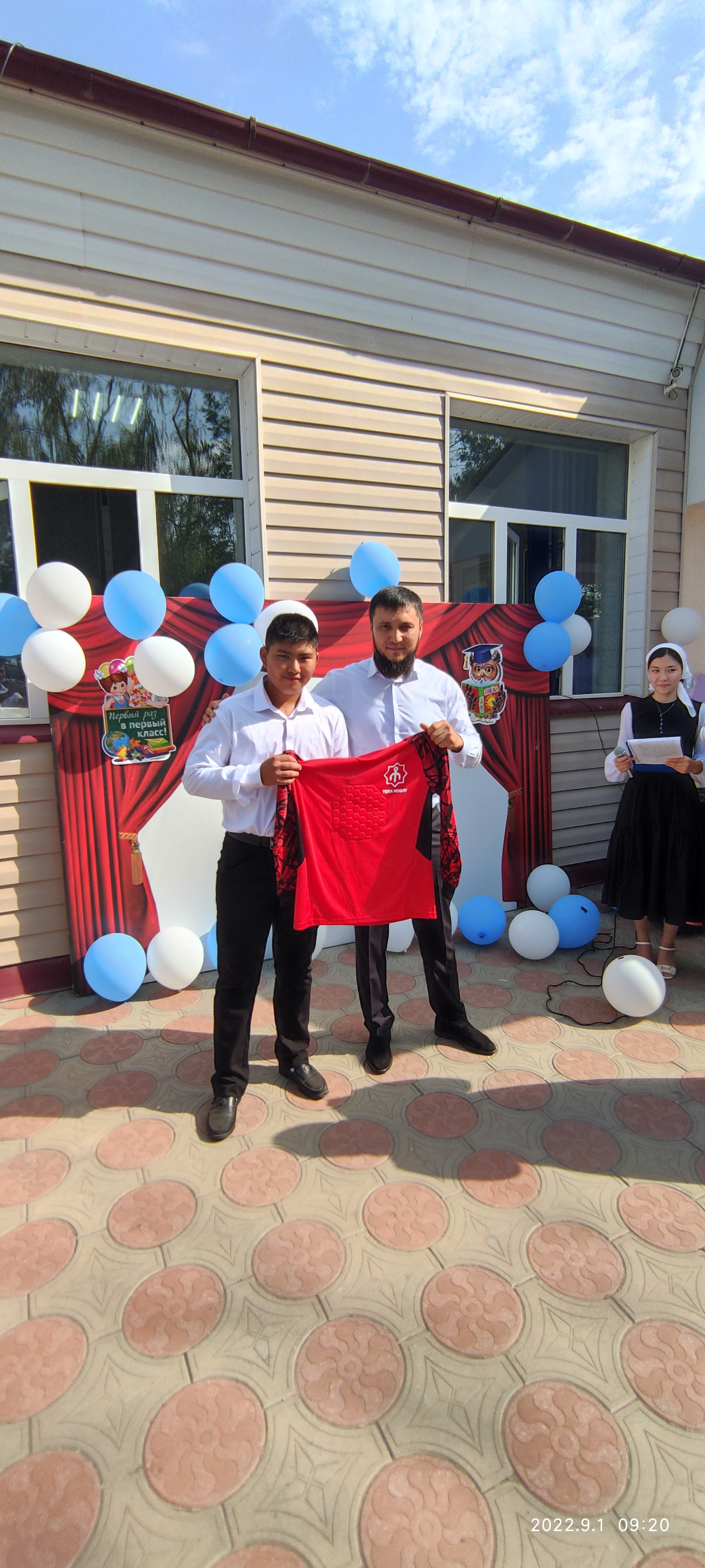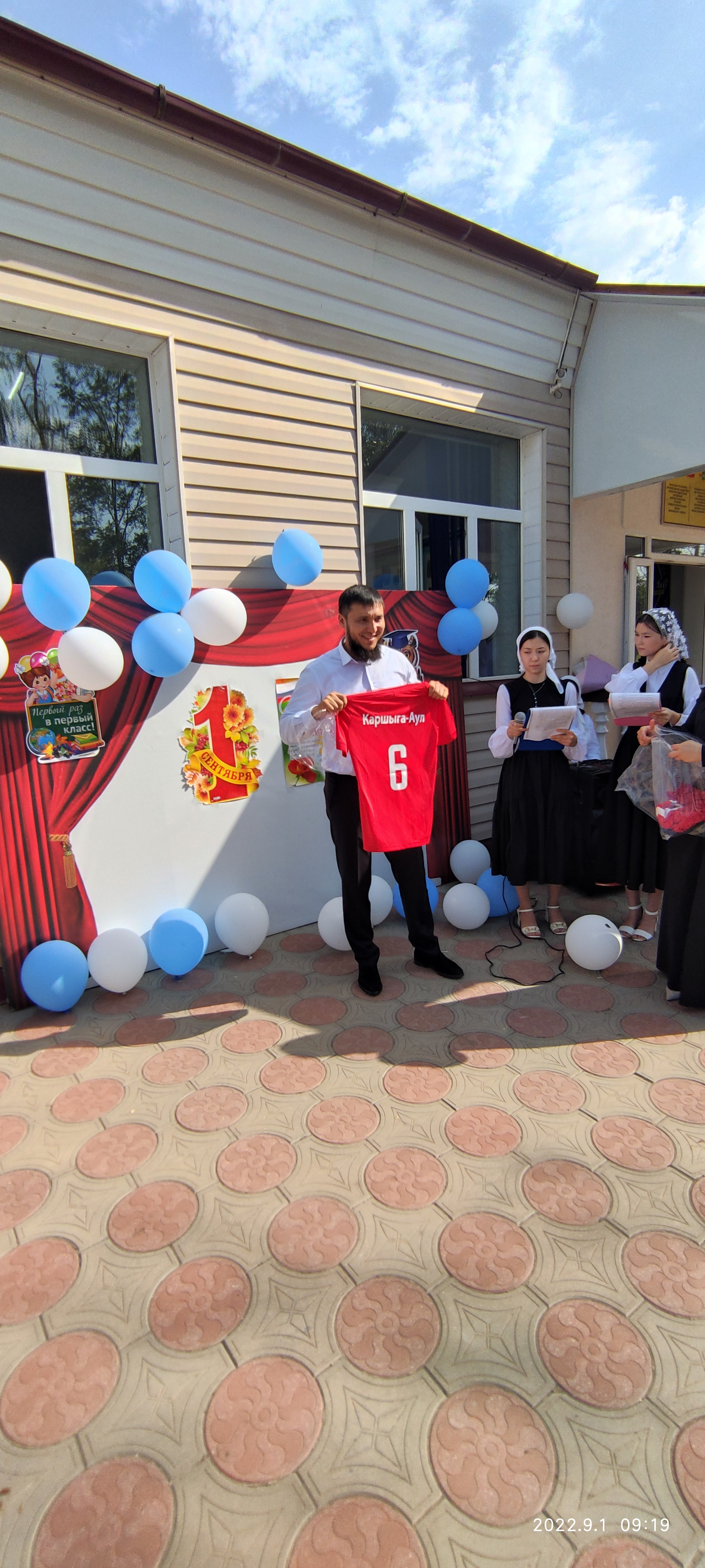 На общешкольной линейке были вручены награды за спортивные достижения юным спортсменам и была презентована новая спортивная форма школьной команды главой администрации с. Каршыга-Аул Еракаевым Р.Х.