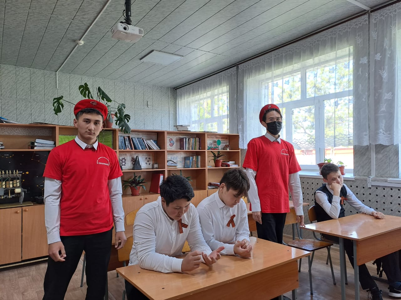 Активисты отряда "Юнармия" провели акцию "Георгиевская лента" с целью формирования у обучающихся и жителей села уважительного отношения к одному из символов воинской славы России
