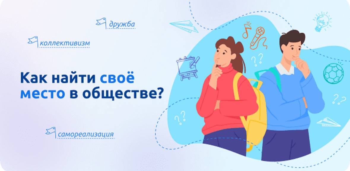 Найти свое место в обществе - это значит соответствовать его ценностям и традициям, любить то, чем занимаешься и приносить пользу людям, своей стране. Участие в общественной и социально значимой деятельности, воплощенной, в том числе, через проекты и программы для детей молодежи - возможность получше узнать себя, свою страну, ее людей и историю, развить полезные знания и навыки, чтобы в будущем занять свое место в обществе и быть счастливым.