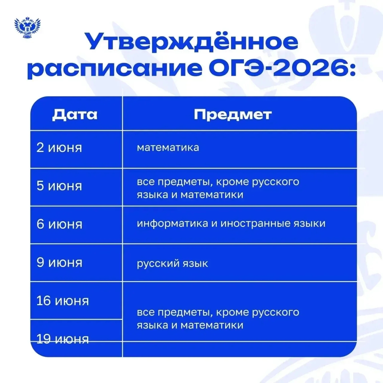 ✅ Утверждены единое расписание и период проведения ОГЭ и ЕГЭ в 2026 году